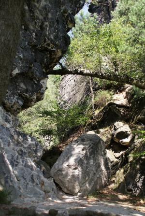 Der Reitsteig ist für mich einer der schönsten Wanderwege überhaupt. Man hat zwar nicht die grandiosen Ausblicke, wie wir sie vom Lilienstein oder den Schrammsteinen kennen, doch dafür werden wir belohnt durch eine gigantische Felsenwelt. Überall sieht man die verrücktesten Felsgebilde die man sich nur vorstellen kann. Manchmal hat man das Gefühl, die Wände erdrücken einen, dann kommen gewaltige Höhlen, Überhänge, Kletterfelsen, Schlüchte - das sind die Thorwalder Wände!